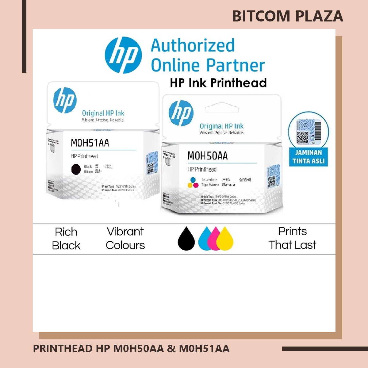 Print Head Cartridge HP GT5810 GT5820 M0H50A Black + Color New Original, Printhead HP Deskjet GT-5810 GT-5820 – HP Ink Tank 315 415